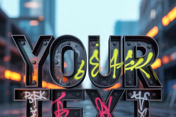 Main Prompt A gritty, urban-style 3D render of "YOUR TEXT"…