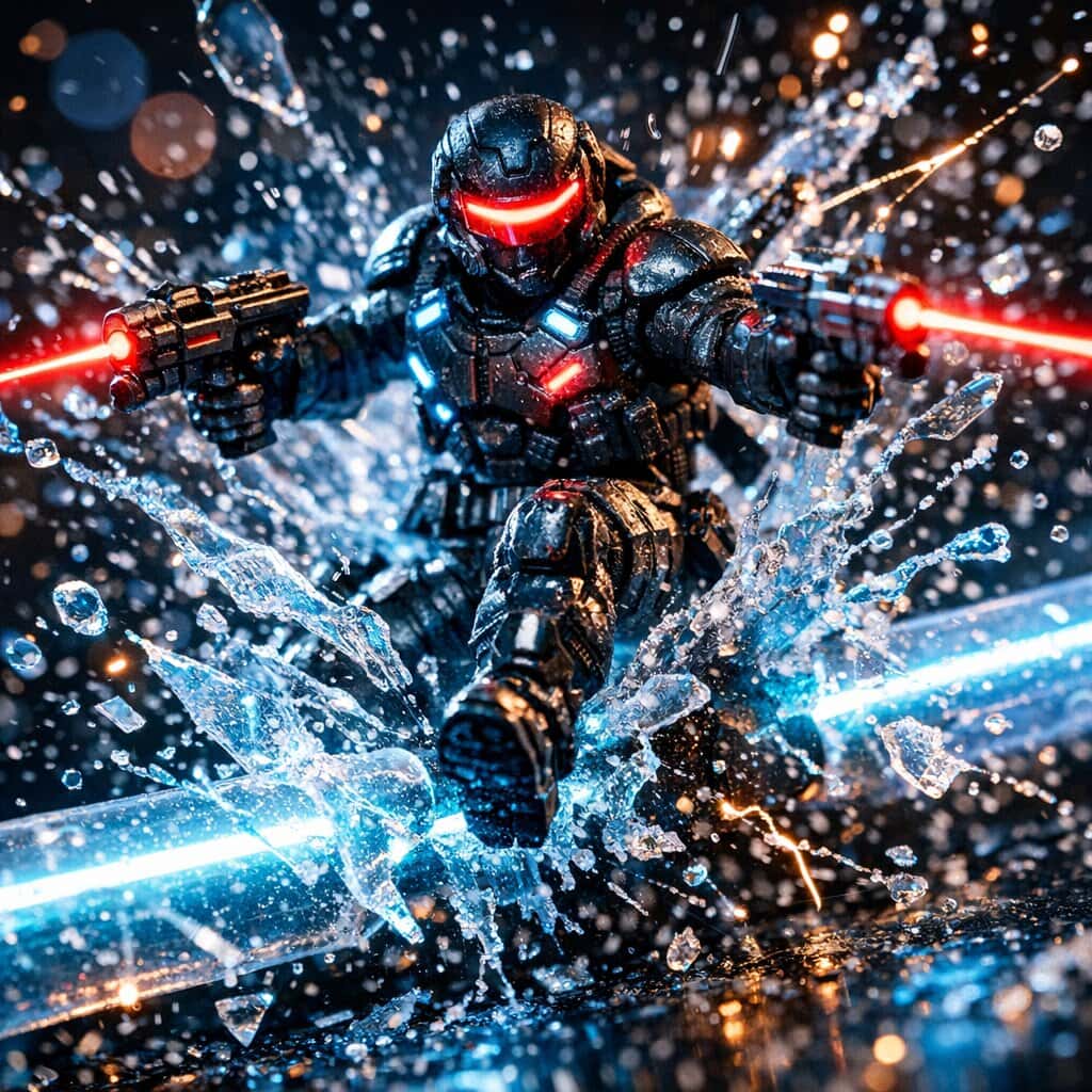 Dive into the thrilling world of high-speed macro photography with this meticulously crafted prompt, designed to replicate dramatic freeze-frame action shots of miniature figures. It creates hyper-detailed, cinematic images featuring explosive splashes, flying particles, and sharp macro depth of field. Whether you are generating epic toy photography, dynamic product mockups, or creative action scenes, this universal prompt delivers breathtaking, photorealistic results across all major AI platforms.