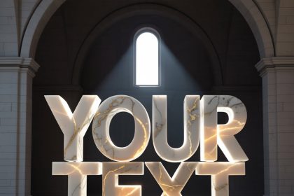 Main Prompt A cool, serene 3D render of "YOUR TEXT" sculpted from…
