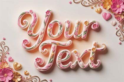 Main Prompt A stunning 3D render showcasing the name "Your Text" in…
