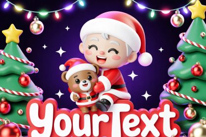 Main Prompt A charming 3D render artwork showcasing "YOURTEXT" in large, playful…