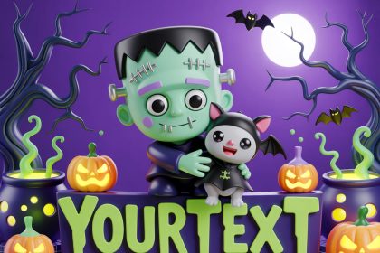 Playful Frights: A Chibi Frankenstein Halloween Scene