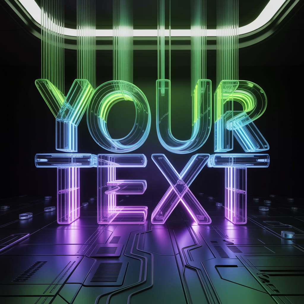 Main Prompt A dark, moody 3D render of "YOUR TEXT" made from…