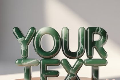 Main Prompt A cool, serene 3D render of "YOUR TEXT" sculpted from…