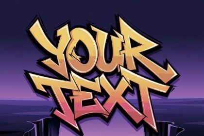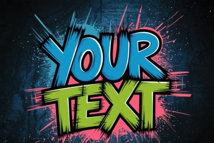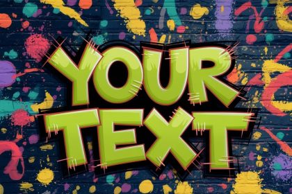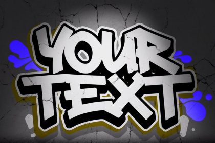 Main Prompt “YOUR TEXT” is displayed in bold, graffiti-style lettering, with each…