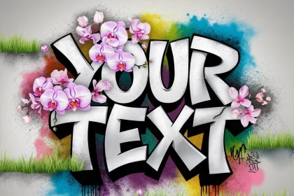 Main Prompt A 3D, colorful graffiti-style typography of the text "YOUR TEXT"…