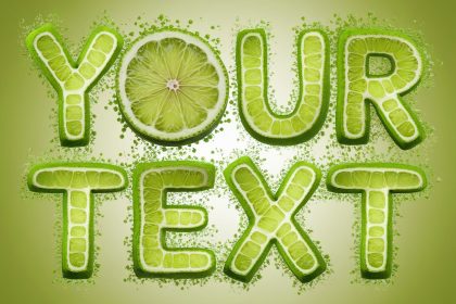 Main Prompt The word "YOUR TEXT" is composed of vibrant, juicy lime…