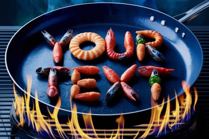 Main Prompt A captivating, hyper-realistic 3D render of a frying pan brimming…