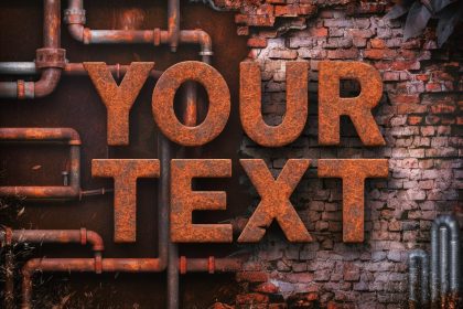 Main Prompt A captivating image of rusted metal text, with the words…