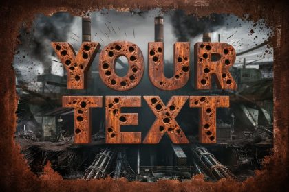 Main Prompt A gritty and industrial scene, with the words "YOUR TEXT"…