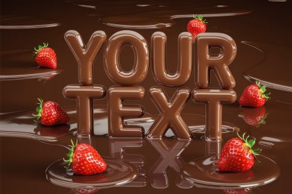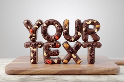 Main Prompt A striking 3D render typography displaying the chocolate text "YOUR…