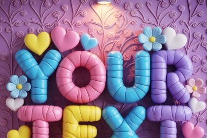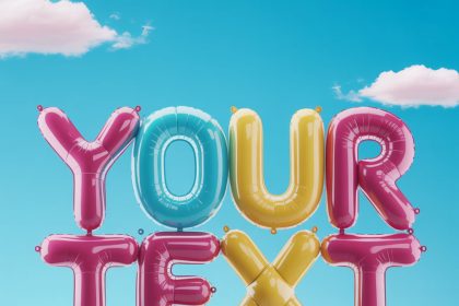 Main Prompt A cheerful, balloon-themed 3D render of "YOUR TEXT" made from…
