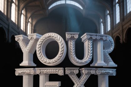 Main Prompt A grand, architectural 3D render of "YOUR TEXT" sculpted from…