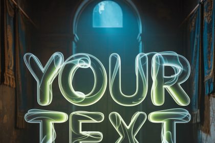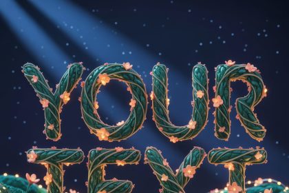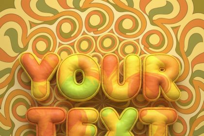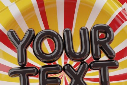 Main Prompt A vibrant 3D render showcases the name "YOUR TEXT" in…