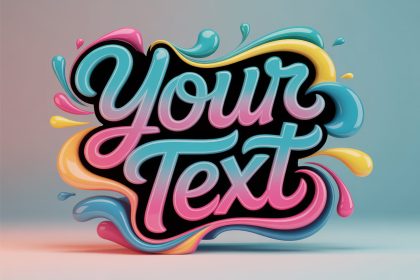 Main Prompt A vibrant 3D render showcases the multicolored letters "YOUR TEXT"…
